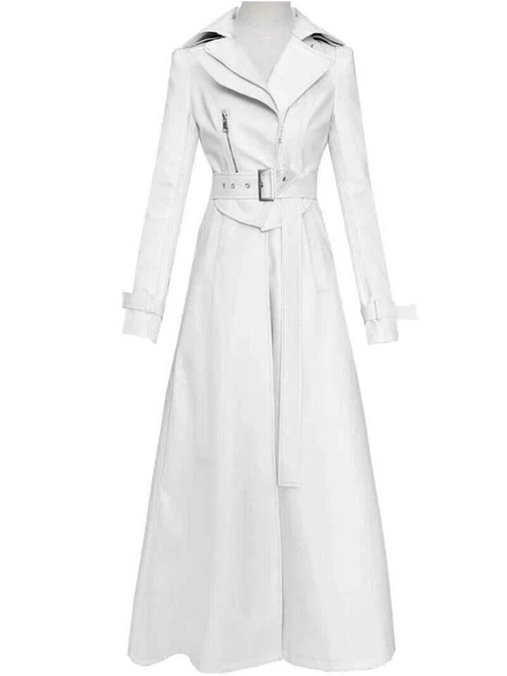 Real Leather Trench Coat Womens Long Sleeve Luxury Fashion Overcoat Windbreaker