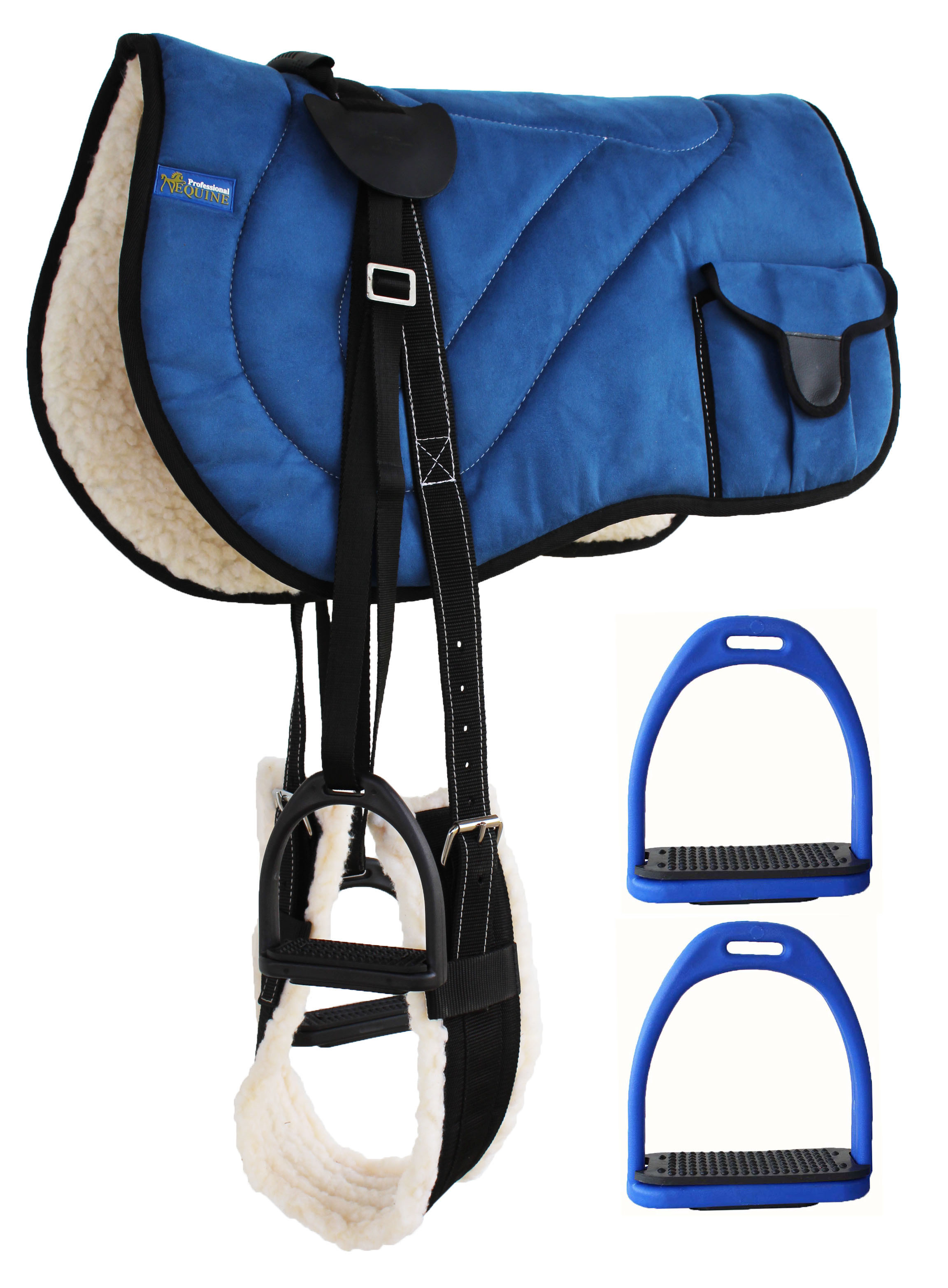 Pferd SATTELPAD Trail Vlies gepolstert verstellbar Bareback Pad Tasche Steigbügel