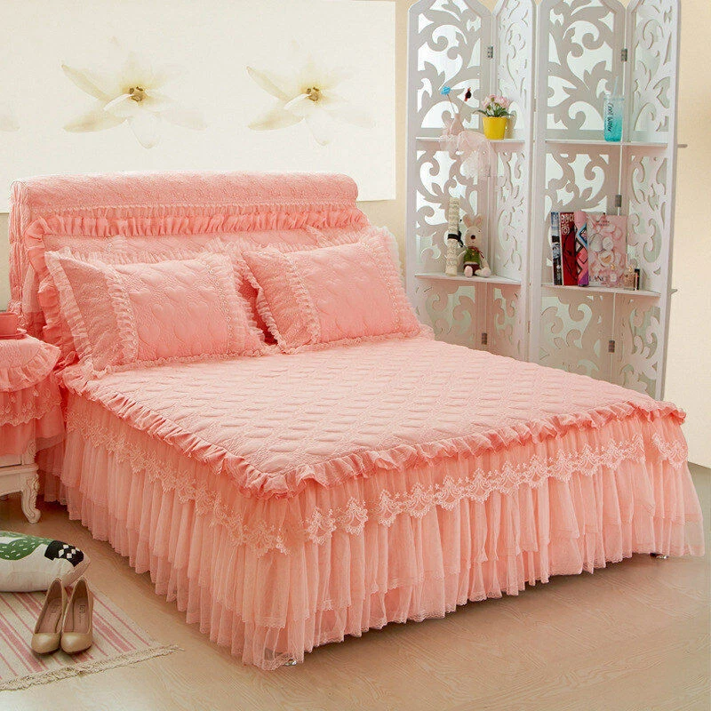 Koreanisch gesteppte Baumwolle Spitze Tagesdecke Staub Rüsche Bettrock Königin Passbettlaken