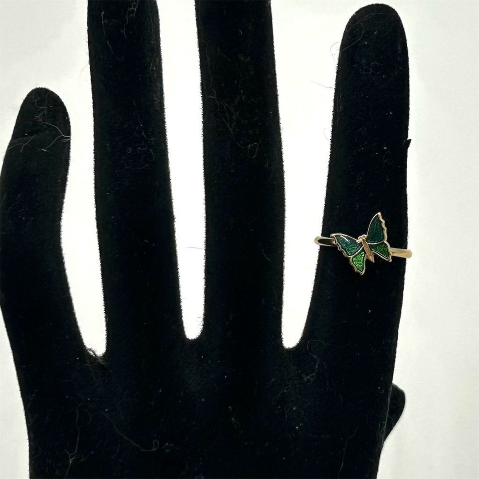 Vintage Avon Green Enamel Butterfly Ring Women's Jewelry 1970s Size 5