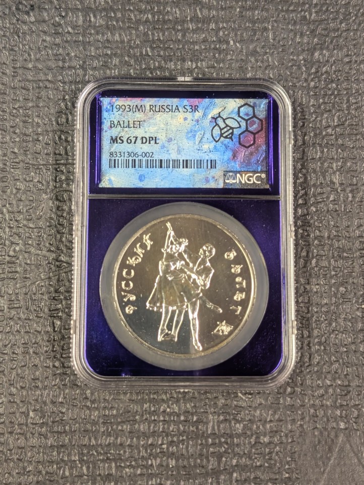1993 (M) MS 67 DPL Ballet Russia Silver 3 Rubles - Amazing Original Coin - NGC