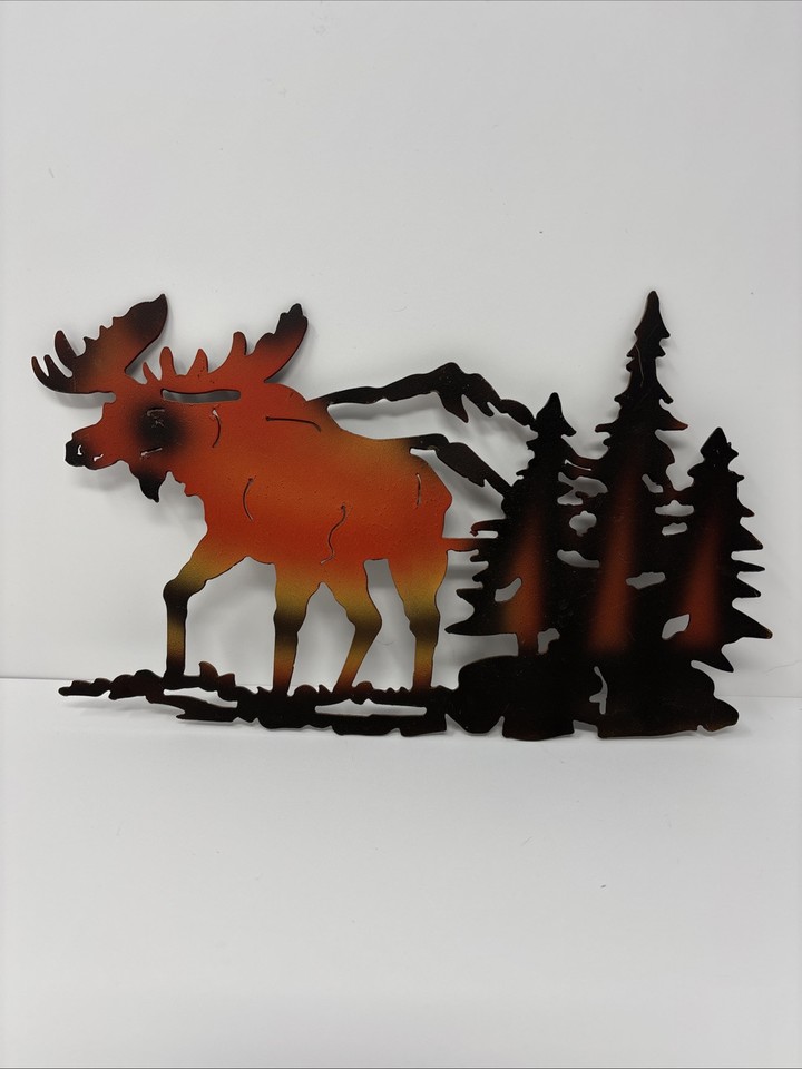 Elche, Kiefern und Berge Metall Wandbild Berghütte Hütte Wohndeko