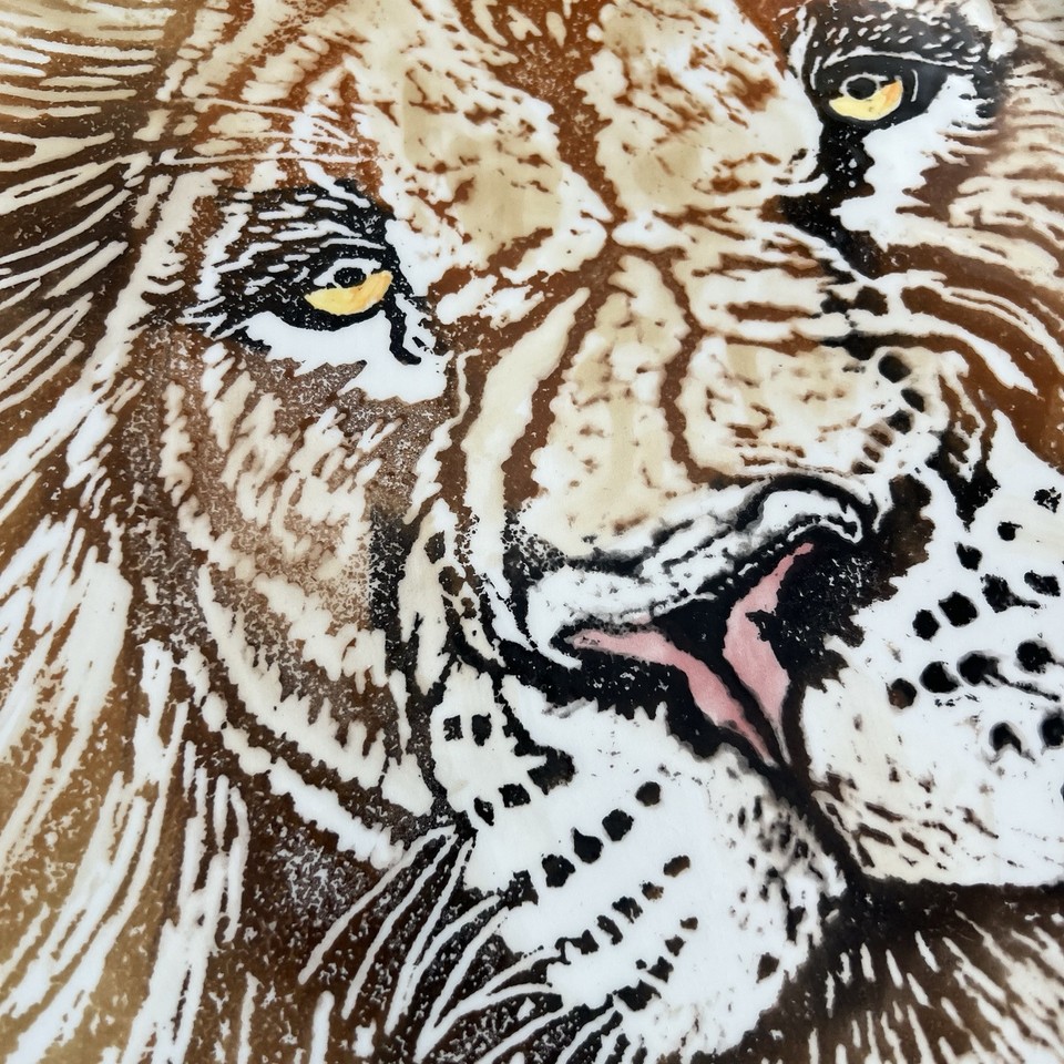 Vietri Into The Jungle Collection Lion Oval Platter, Discontinued & Spectacular