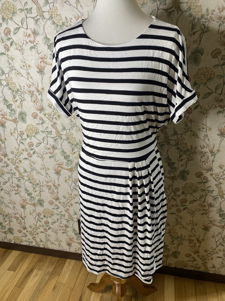Chaps Strickkleid mit Rundhalsausschnitt, schwarz weiß gestreift XL