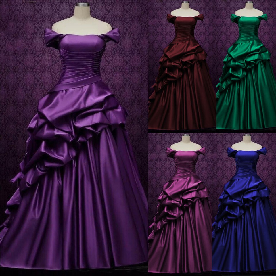 Vintage Satin Brautkleider Schulterfrei Rüschen Korsett A Linie Brautkleid