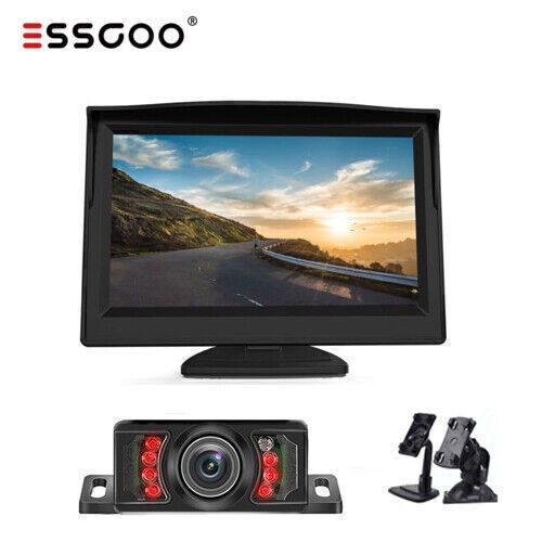 ESSGOO Auto HD Nummernschild Funk Kabellos Rückfahrkamera Mit 5 Zoll LCD Monitor