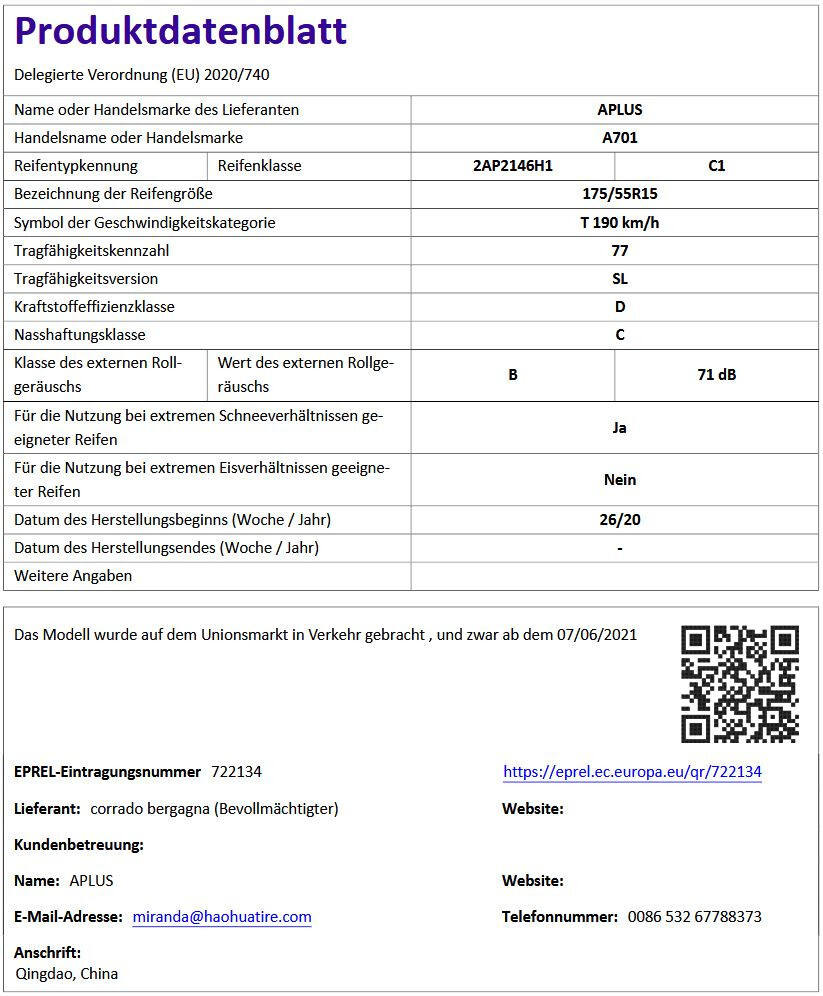 Tragfähigkeitsindex77: max. 412 kg je Reifen