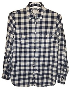 J Crew Perfect Fit Popover Button Up Top Black White Plaid Womens Sz XS Flannel