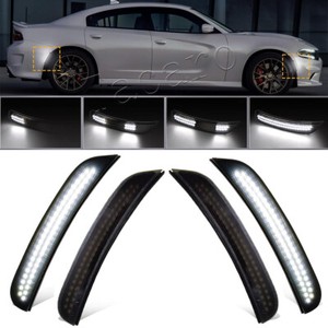 White LED Side Marker Light Front Rear Smoked For 2015-23 Dodge Charger