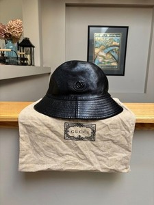 Gucci Fischerhut schwarz Leder Double G - Medium - UVP 950 $ - neu - authentisch