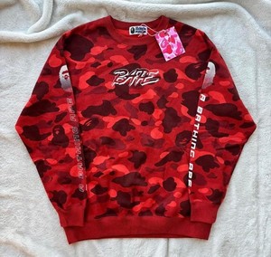 Bape Red Camo Spell Out Sweater Crewneck - Medium - Authentic - New