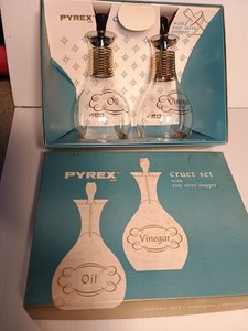 Vintage Pyrex Cruet Set Öl & Essig Flaschen mit Deckel in OVP Vintage USA
