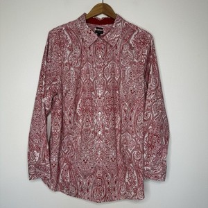 Talbots Hemd mit Knopfleiste Damen 20 W rot weiß Paisley knitterarm Stretch
