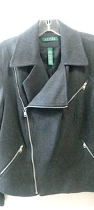 Lauren Ralph Lauren Wollmischung Asymmetrische Moto Jacke Grau Gr. L Damen Preppy