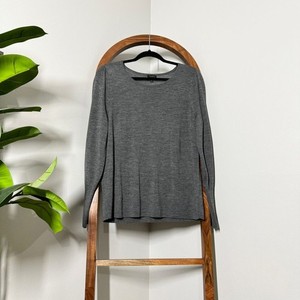Talbots LARGE grau 100% Merinowolle Perlenbündchen leichter Strickpullover