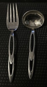 5 Stck. Mikasa LUCIA Edelstahl Besteck glänzend flache Spitze Tafelgabel durchbohrter Löffel CHF 19,15