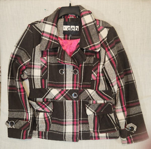 Vintage DEB PEACOAT Damen Junior XL schwarz rosa kariert gefüttert Y2K