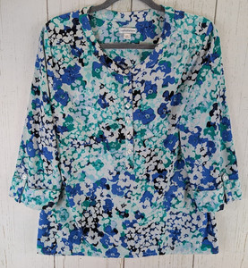 Crofts Barrow Größe Large Damen mehrfarbig Blumendruck Knopfleiste 3/4 Ärmel Top