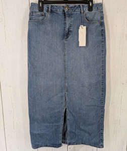 Neu mit Etikett Rachel Zoe Repreve Damen hoch geschnitten Stretch Schlitz Maxi Denim Rock Größe 8 blau