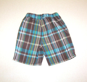 Infant Boy's Faded Glory Brown, Blue & White Plaid Cotton Shorts 18 Months