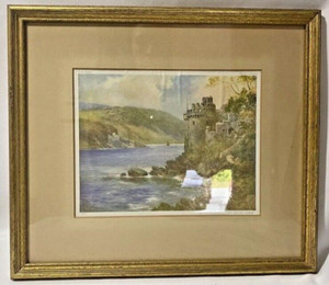 DARTMOUTH CASTLE DRUCK 32/70 ENGLAND BRITAIN LANDSCHAFT KUNST GERAHMT