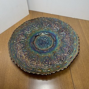 Fenton Carnival Glasplatte Persisches Medaillon Blackberry runder Fußteller