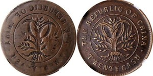 ER153 1919 China Hunan. Prägefehler -- Full Obverse Brockage, 20 Cash, NGC AU50