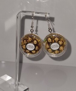 Paar Miniatur Ferrero Rocher Schokolade Ohrringe Handarbeit 5 cm Fun Party
