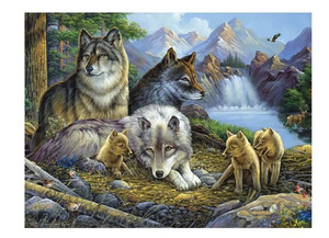 Bits and Pieces 300 große Teile Puzzle Wölfe am Wasserfall Neu