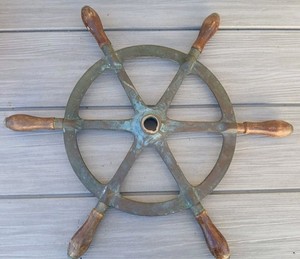 ANTIKES SCHIFFSRAD HOLZGRIFFE Messing/Bronze Holzgriffe 19 Zoll