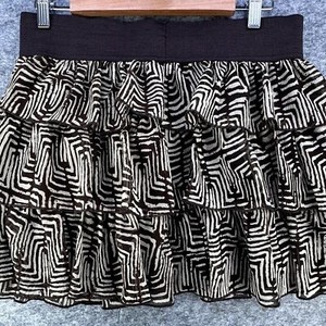 Heart Soul Skirt Size Juniors XL Layered Ruffled Geometric Brown Beige