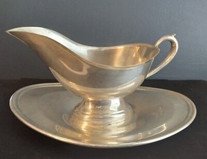 Vintage Blätter Rockford Silver Co Soße Boot mit Tablett