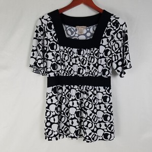 Susan Lawrence Shirt Damen Small Weiß Oberteil Geometrisches Muster Kurzarm Quadratischer Ausschnitt