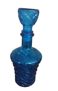 Blaue Karaffe Glas 9,5" Ritter Rautenmuster Kopfbolzen