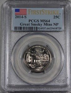 2014 S Great Smoky MTNS NP QUARTER 25C PCGS MS66 FIRST STRIKE 29418823