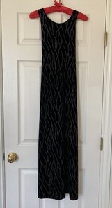 Vintage Ronnie Nicole Maxi Dress Womens 6 Black Velvet Vines Pattern Holiday
