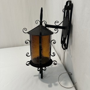 Vintage große Wandleuchte Braunglas Spanish Revival Schmiedeeisen