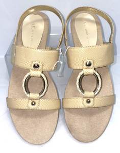 Anne Klein AKLONGLY Women's Cork Wedge Animal Texture Sandal Size 7.5M Beige B*O