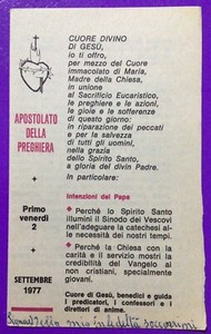 SANTINO HOLY CARD, APOSTOLATO DELLA PREGHIERA, SETTEMBRE 1977 -RIF. 7970