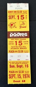 9-15-1974 Phil Neilkro Win 127 Full Padres Ticket Braves HOF CG 20W Jahr LED NL