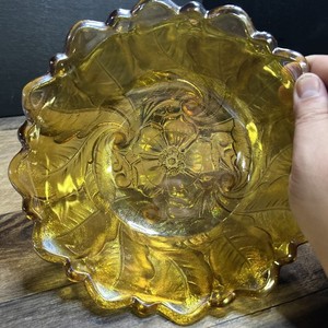 Vintage MCM große Karneval Glas Schale Ringelblume Pfirsich irisierend gerippt Daumenabdruck? CHF 9,60CHF 16,00