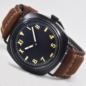 Poliertes 45mm schwarzes Zifferblatt Asien Handaufzug 6497 PVD Uhr Miltary grüne Markierungen P9 CHF 58,89