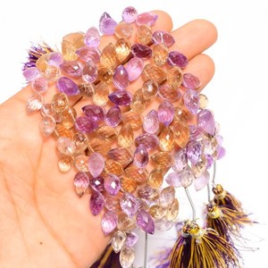 Natürlicher Ametrin Edelstein Tropfenform Facettiert Perlen 10X6 mm Strang 18-22 Stck.