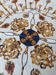 Italien Damen Schal 50 Seide/50 Polyester, Royal, Schlüssel, Marine, Regal 35" Vintage