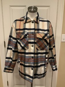 John Elliott graue Woll-Varsity-Bomberjacke mit Reißverschluss Saison acht, Größe Large