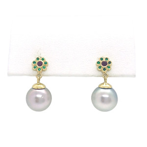 Tsavorit Rubin Akoya 8,5 mm graue Perle 18k Gelbgold Ohrhänger Ohrringe