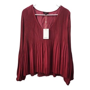 Quince Damen Burgunderrot Plissee V-Ausschnitt Langarm Bluse Top Gr. M