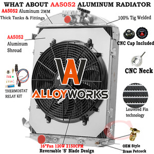 3-Row Aluminum Radiator Shroud Fan For 1942-1952 Ford F1 F2 F3 Pickup Truck V8