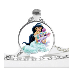 Aladdin Halskette Jasmin und Abu der Elefant Mädchen Disney Andenken Geschenk Cabochon