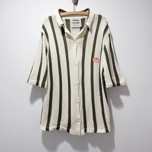 Damson Madder gestreiftes Strick Button-Down Shirt Größe Large cremefarben und grün Rugby